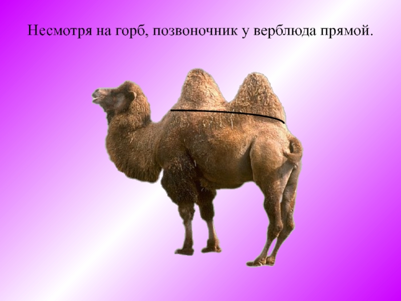 Слайд 15Несмотря на горб, позвоночник y верблюда прямой.
