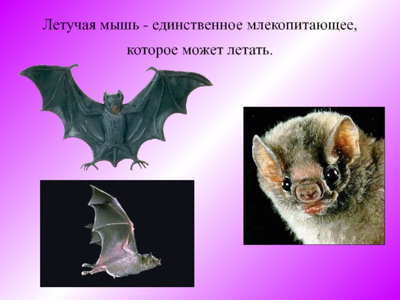 Слайд 18Летучая мышь - единственное млекопитающее, которое может летать.