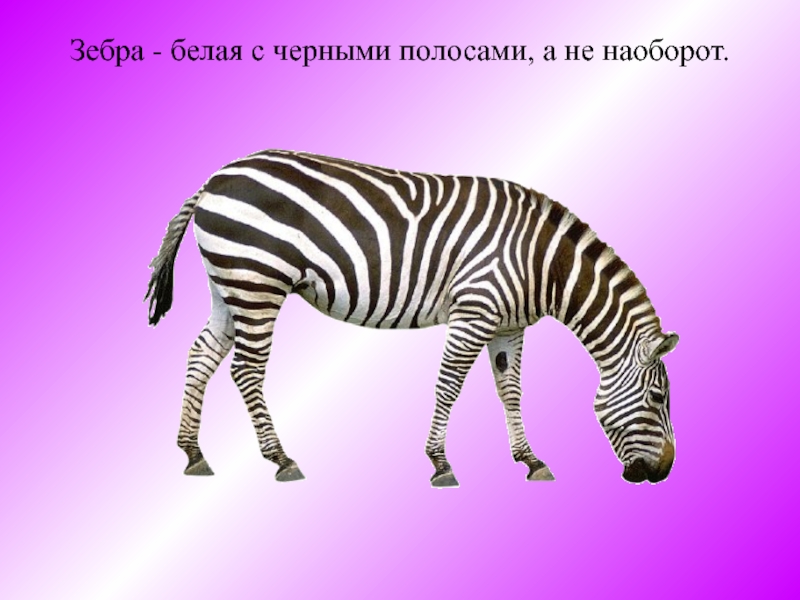 Слайд 8Зебра - белая с черными полосами, а не наоборот.