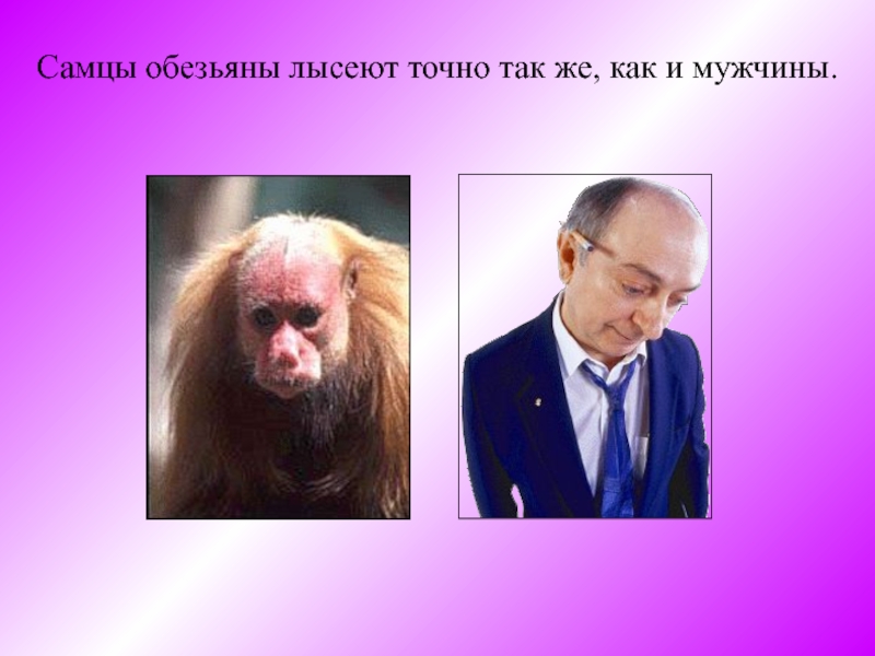 Слайд 14Самцы обезьяны лысеют точно так же, как и мужчины.
