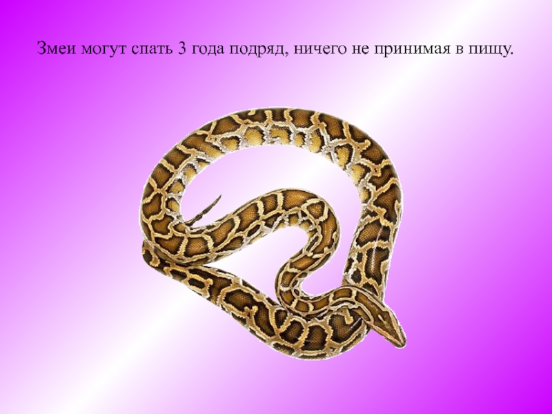 Слайд 6Змеи могут спать 3 года подряд, ничего не принимая в пищу.