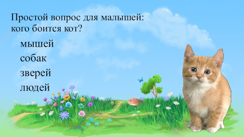 Слайд 3Простой вопрос для малышей: кого боится кот?