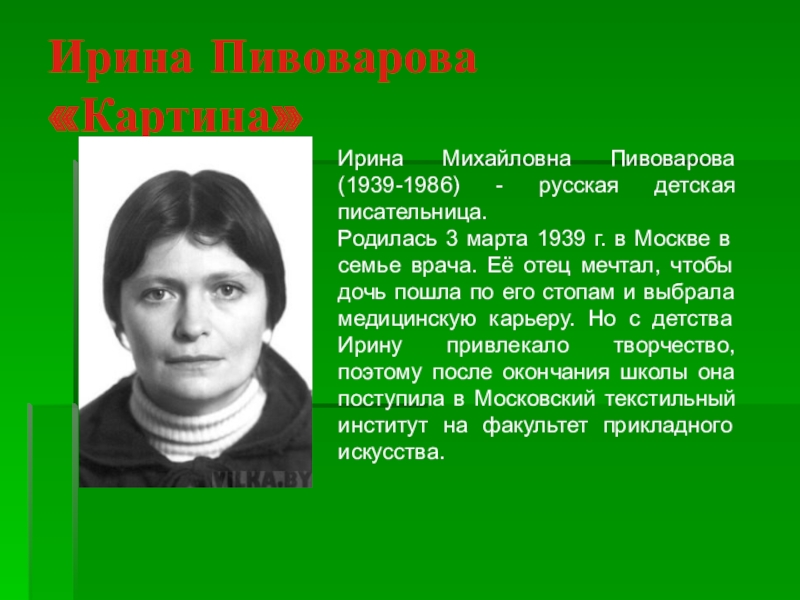 Слайд 1Ирина Пивоварова «Картина»