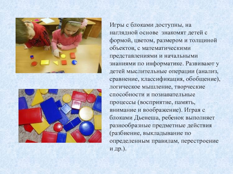 2.Игра «Художники» учит малышей сравнивать свойства предметов и развивает его эстетические способности. Для игры заранее приготовьте логические фигуры, специальные эскизы картин и дополнительные детали для оформления картины. Ребенок должен нарисовать картину по эскизу.
