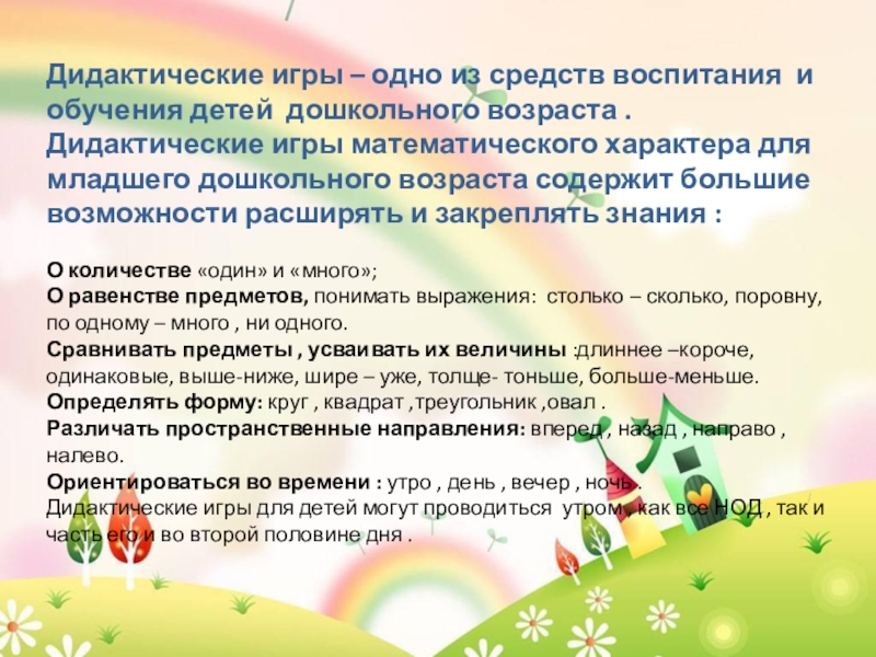 « Использование дидактических игр в формировании элементарных математических представлений у детей младшего дошкольного возраста»