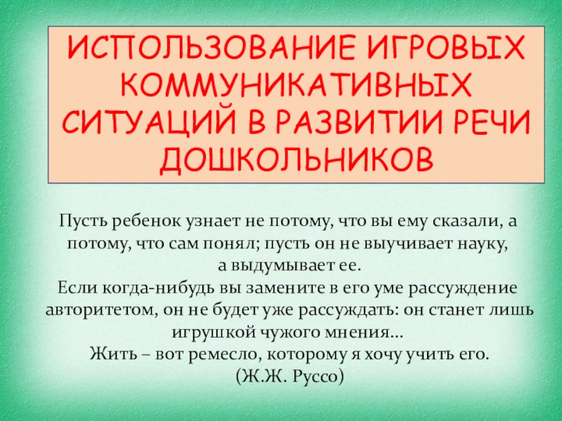 ИСПОЛЬЗОВАНИЕ ИГРОВЫХ КОММУНИКАТИВНЫХ СИТУАЦИЙ В РАЗВИТИИ РЕЧИ ДОШКОЛЬНИКОВ