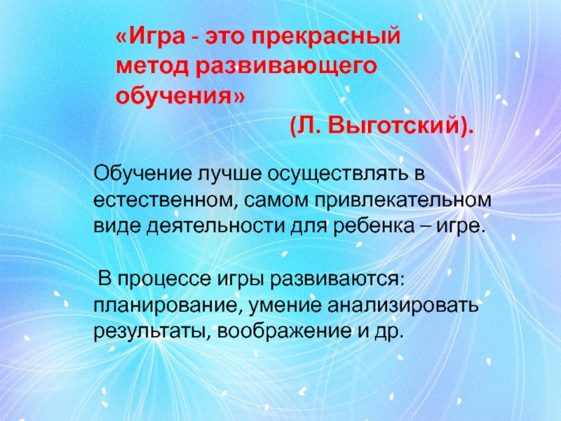 «Игра - это прекрасный метод развивающего обучения»