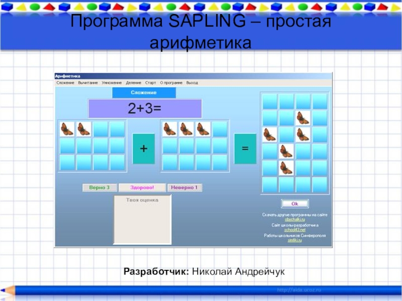 Слайд 17Программа SAPLING – простая арифметика