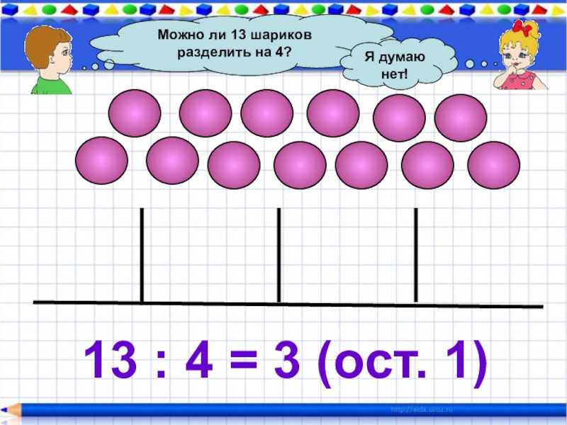 Слайд 11Можно ли 13 шариков разделить на 4?