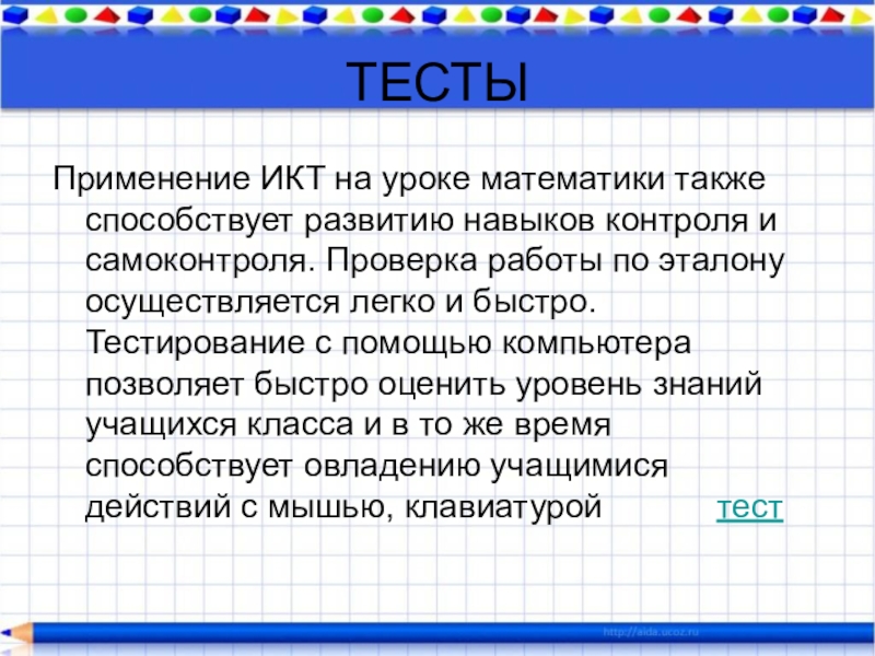 Применение ИКТ на уроке математики также способствует развитию навыков контроля и