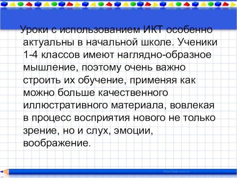 Слайд 2 Уроки с использованием ИКТ особенно актуальны в начальной школе. Ученики