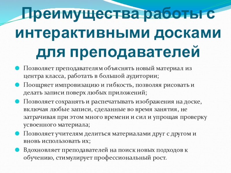 Слайд 17Преимущества работы с интерактивными досками для преподавателей