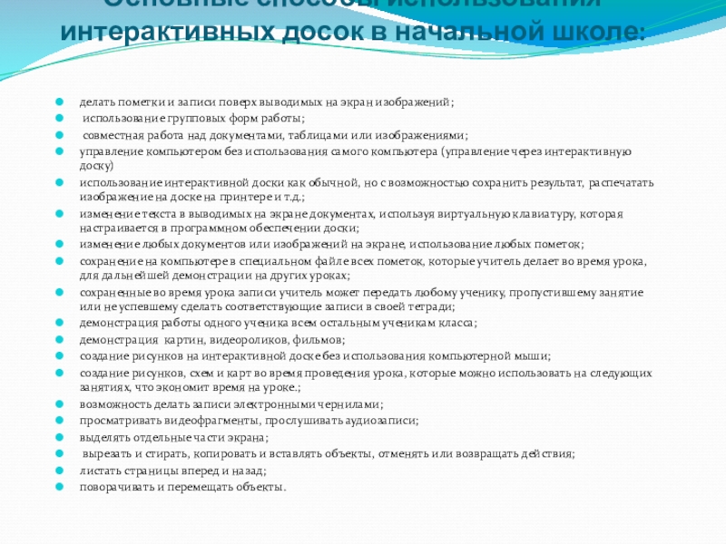 Слайд 19Основные способы использования интерактивных досок в начальной школе:
