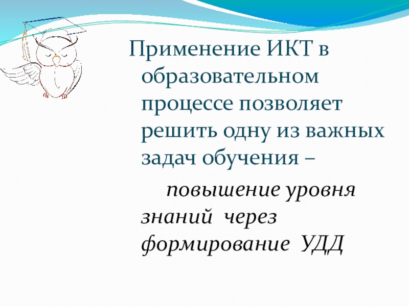 Слайд 25Применение ИКТ в образовательном процессе позволяет решить одну из важных задач