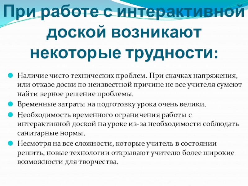 Несмотря на все сложности, которые учитель в состоянии решить, новые технологии открывают учителю более широкие возможности для творчества.