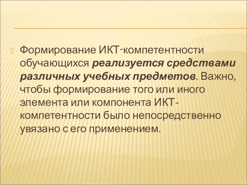 Формирование ИКТ‑компетентности обучающихся реализуется средствами различных учебных предметов. Важно, чтобы формирование