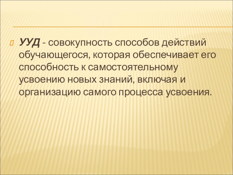УУД - совокупность способов действий обучающегося, которая обеспечивает его способность к