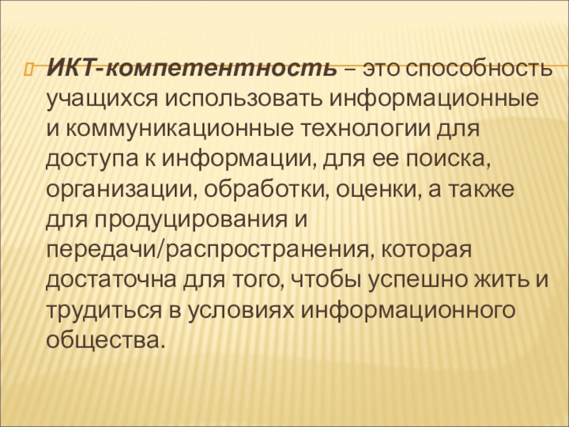 ИКТ-компетентность – это способность учащихся использовать информационные и коммуникационные технологии для