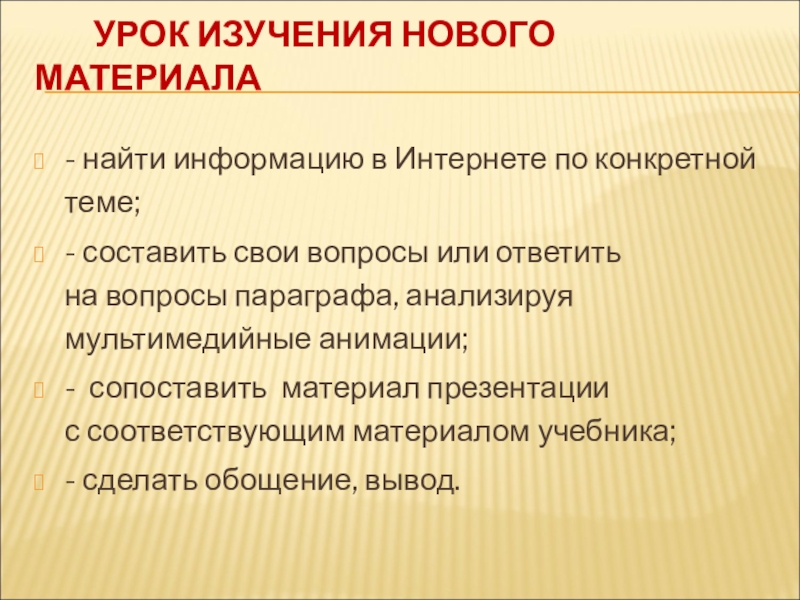 - сопоставить материал презентации с соответствующим материалом учебника;