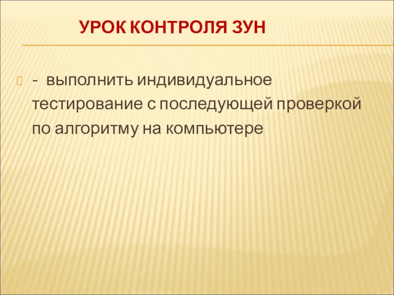 - выполнить индивидуальное тестирование с последующей проверкой по алгоритму на компьютере