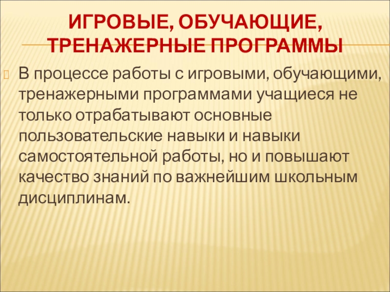 Слайд 27ИГРОВЫЕ, ОБУЧАЮЩИЕ, ТРЕНАЖЕРНЫЕ ПРОГРАММЫ