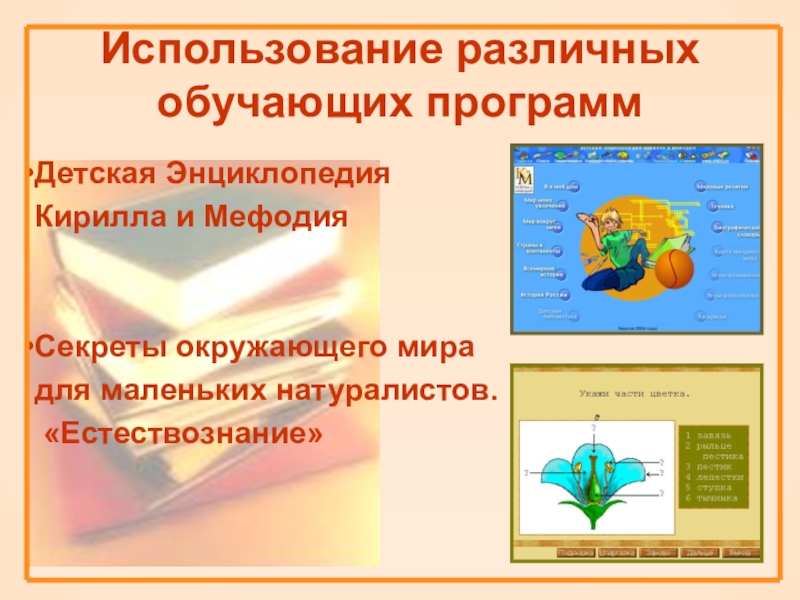 Детская Энциклопедия Кирилла и МефодияСекреты окружающего мира для маленьких натуралистов. «Естествознание»Использование различных обучающих программ