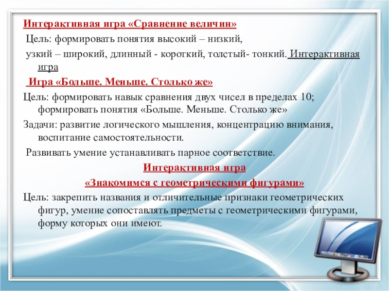 широкий, длинный - короткий, толстый- тонкий. Интерактивная игра