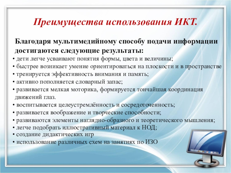 Благодаря мультимедийному способу подачи информации достигаются следующие результаты: