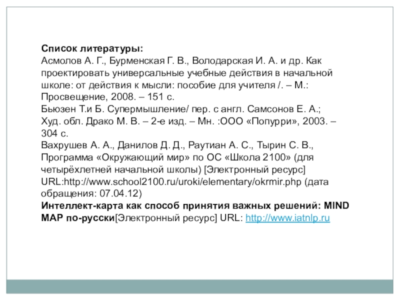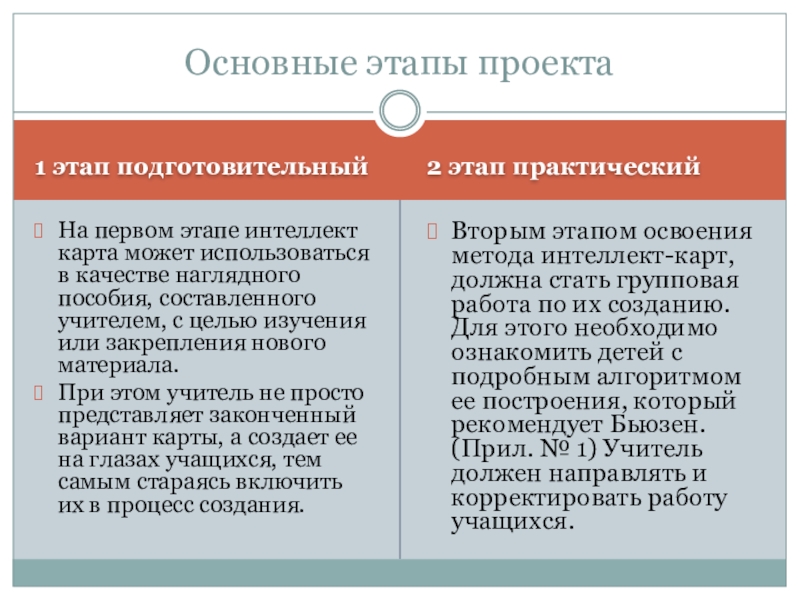 Вторым этапом освоения метода интеллект-карт, должна стать групповая работа по их созданию. Для этого необходимо ознакомить детей с подробным алгоритмом ее построения, который рекомендует Бьюзен. (Прил. № 1) Учитель должен направлять и корректировать работу учащихся.
