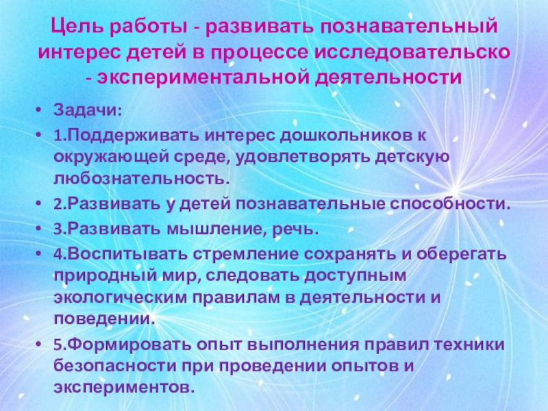 5.Формировать опыт выполнения правил техники безопасности при проведении опытов и экспериментов.