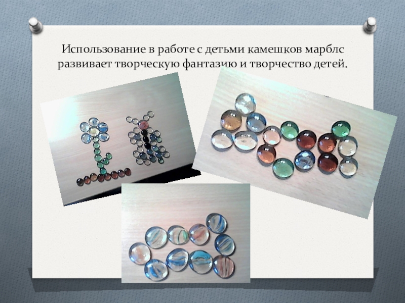 Слайд 8Использование в работе с детьми камешков марблс развивает творческую фантазию и