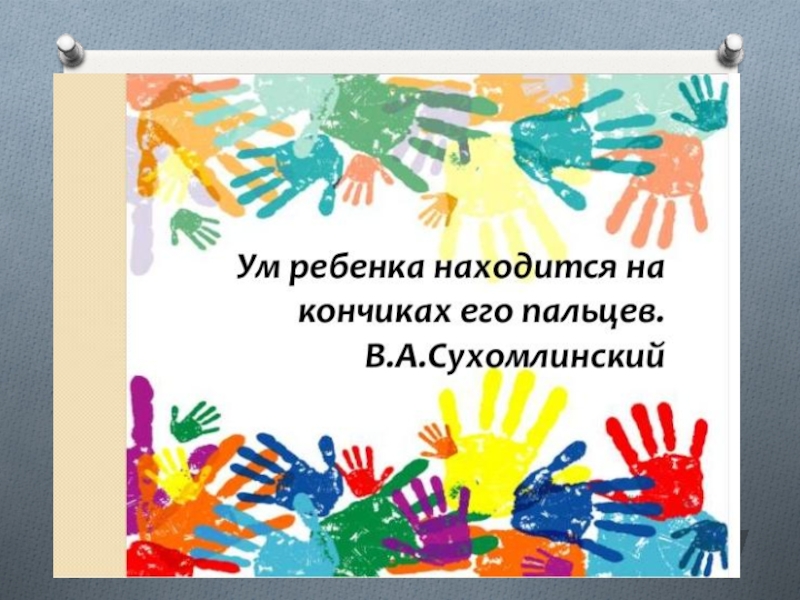 Слайд 2Ум ребенка находится на кончиках его пальцев. В. А. Сухомлинский Вся жизнь ребенка