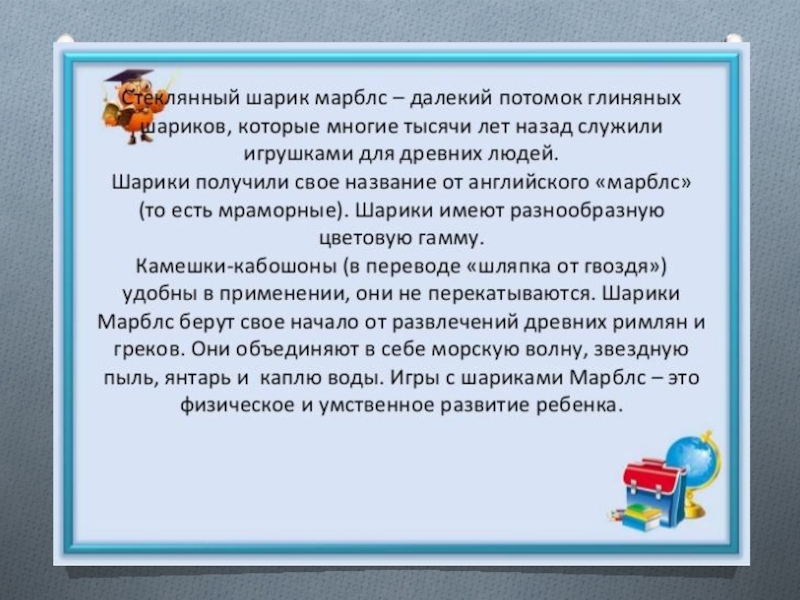 Презентация, доклад Использование камешков марблс в коррекционной работе