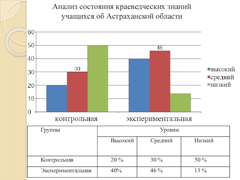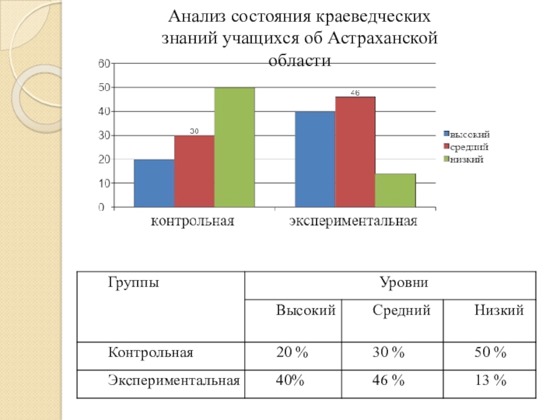 Слайд 11Анализ состояния краеведческих знаний учащихся об Астраханской области