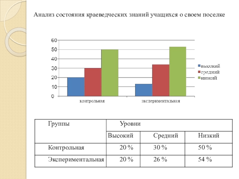 Слайд 9Анализ состояния краеведческих знаний учащихся о своем поселке