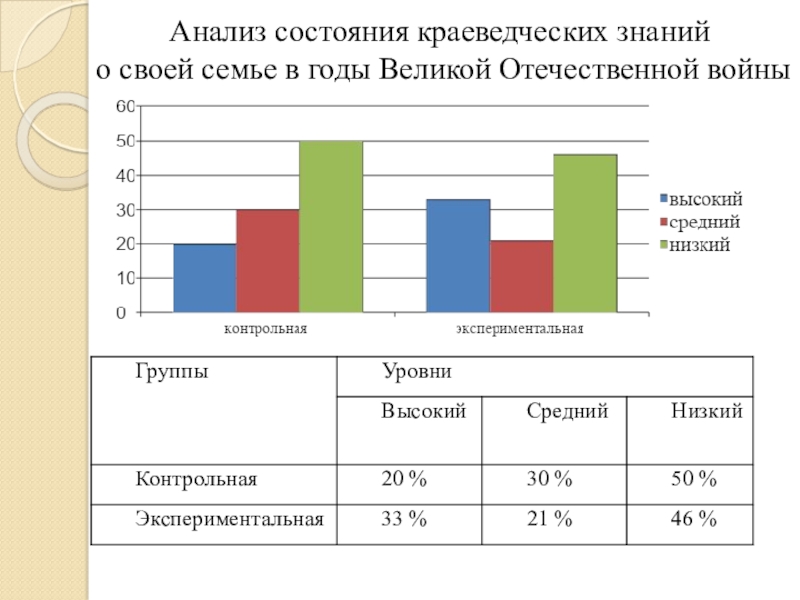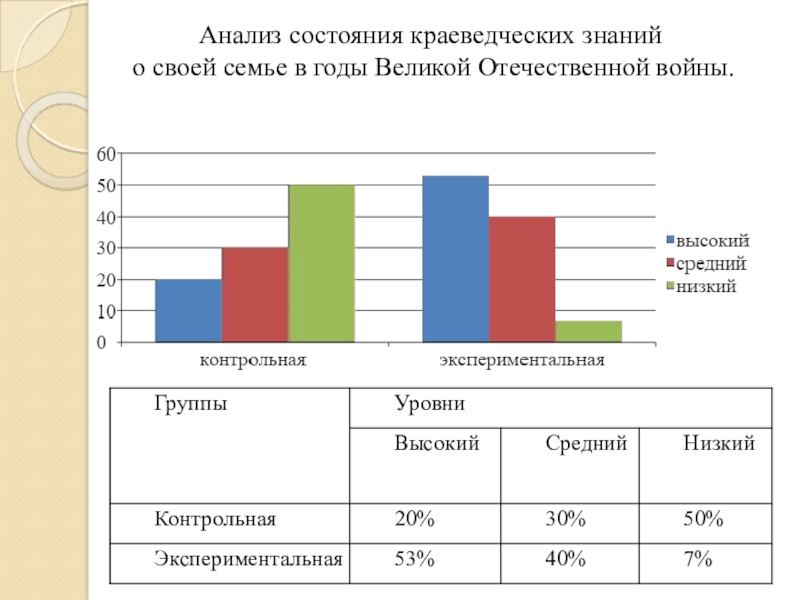 Анализ состояния краеведческих знаний о своей семье в годы Великой Отечественной войны.