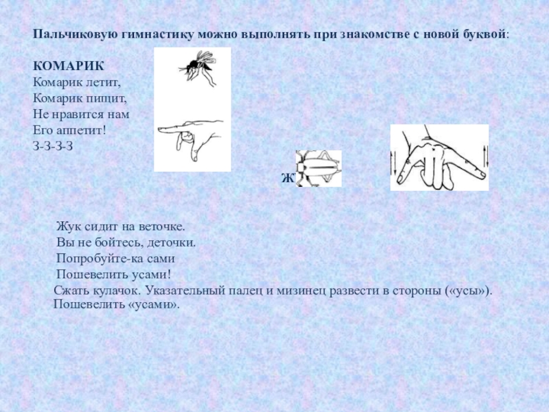 Слайд 13Пальчиковую гимнастику можно выполнять при знакомстве с новой буквой: