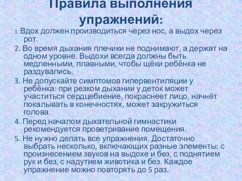 4. Перед началом дыхательной гимнастики рекомендуется проветривание помещения.