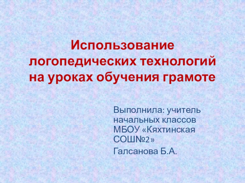 Выполнила: учитель начальных классов МБОУ «Кяхтинская