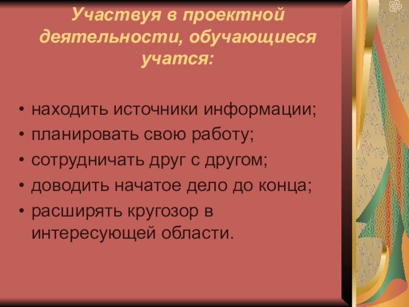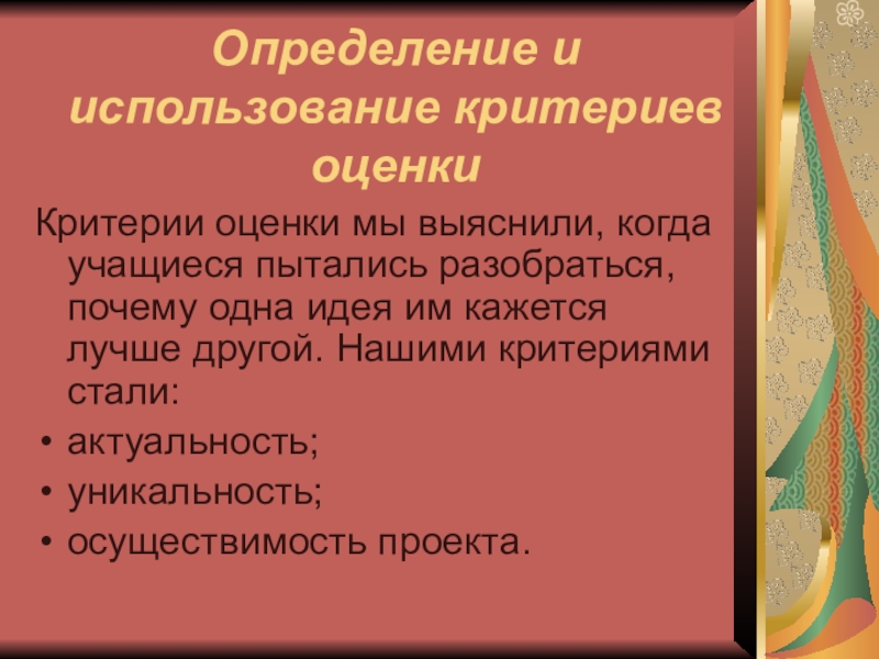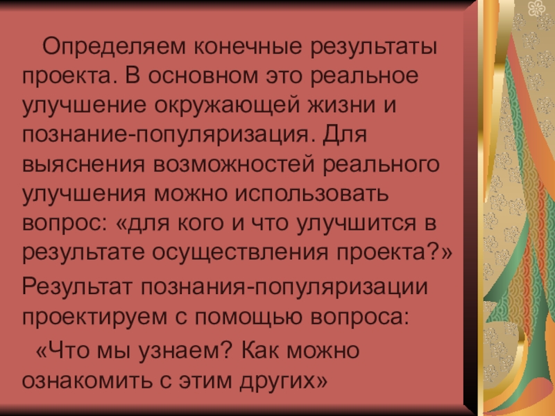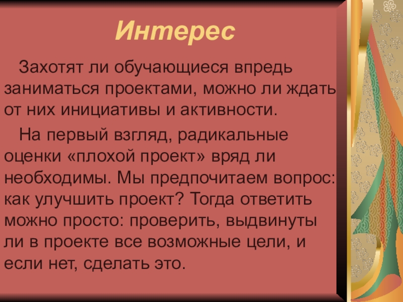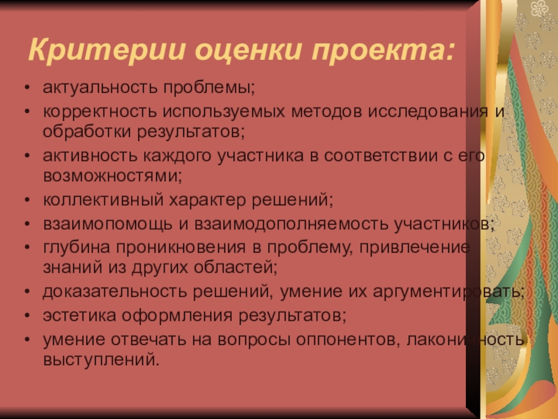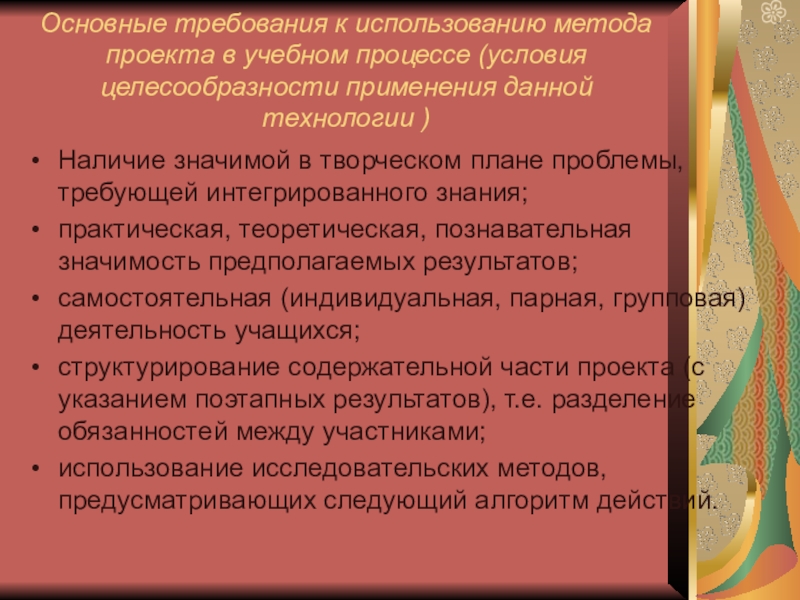 Наличие значимой в творческом плане проблемы, требующей интегрированного знания;