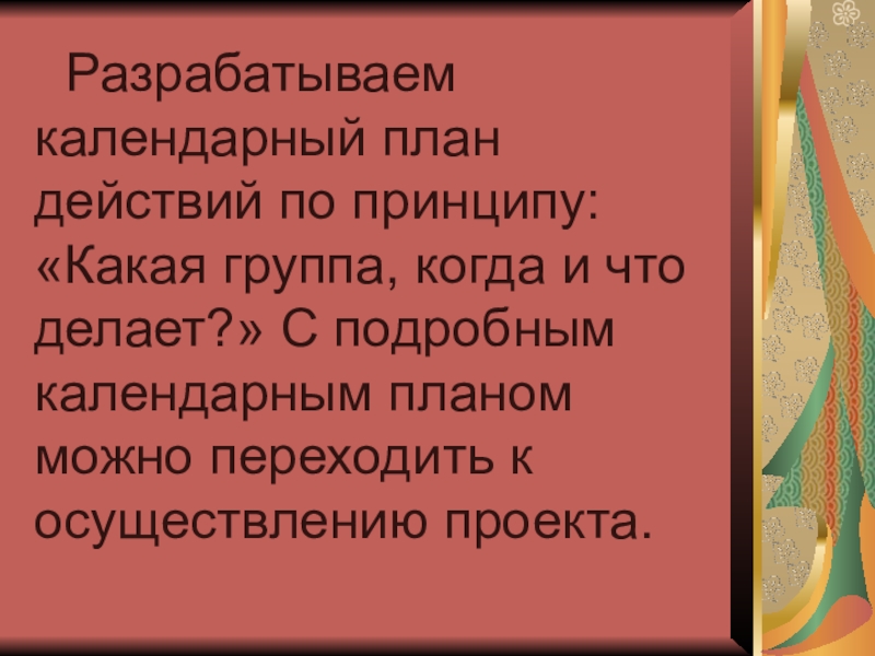 структурирование содержательной части проекта (с указанием поэтапных результатов), т.е. разделение обязанностей между участниками;