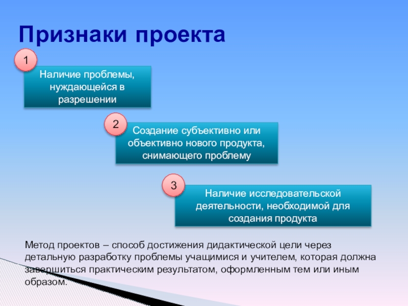 Метод проекта – способ достижения дидактической цели через детальную разработку проблемы, которая завершается реальным результатом – всегда решение какой-либо проблемы.