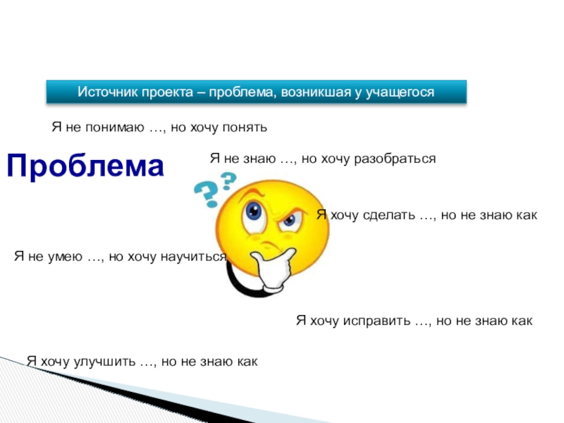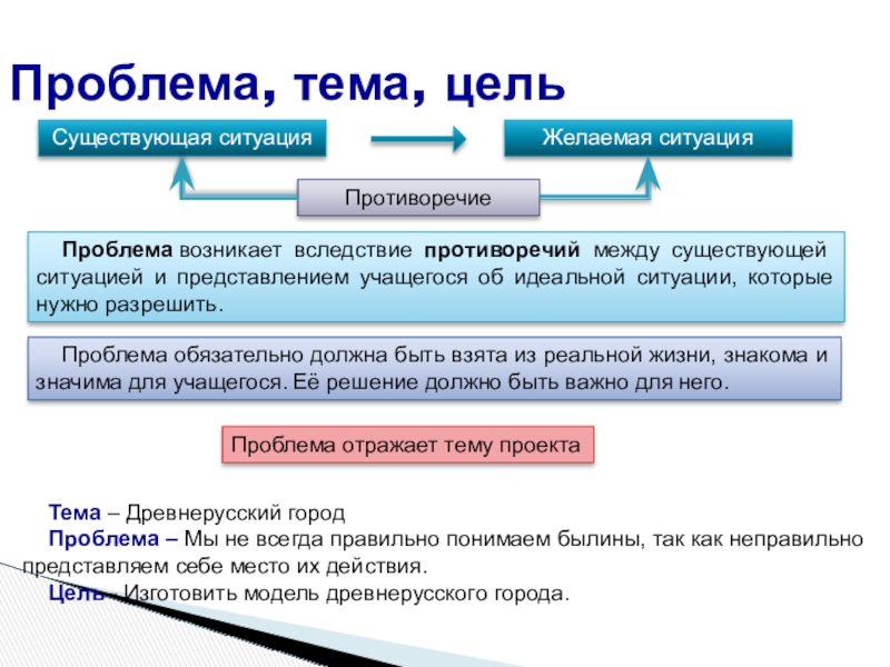 Проблема возникает вследствие противоречий между существующей ситуацией и представлением учащегося об идеальной ситуации, которые нужно разрешить.