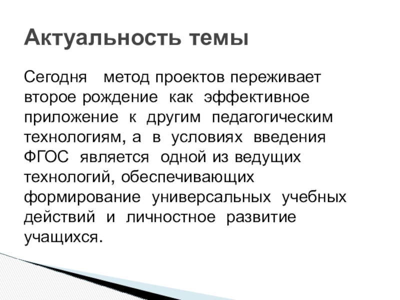 заключается в том, что технология проектной деятельности слабо проработана в методике начального обучения. В то время как существует необходимость использовать эту технологию для осуществления связи теории с практикой в начальной школе.
