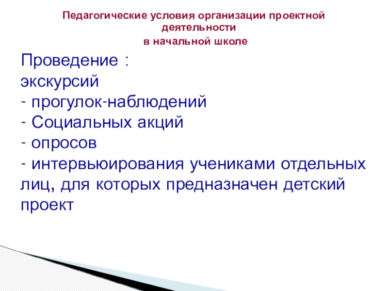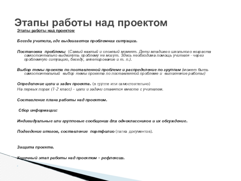 Ошибочное понимание проекта как любой самостоятельной деятельности детей (изготовление чего-либо по инструкции, подготовка реферата по задан-ной схеме, проведение наблюдения или опыта по известному плану и т. д.).