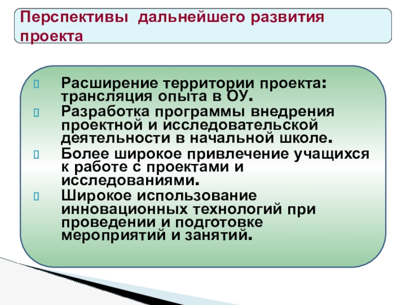 Описание учебного проекта отображает чёткую последовательность мероприятий по его внедрению.