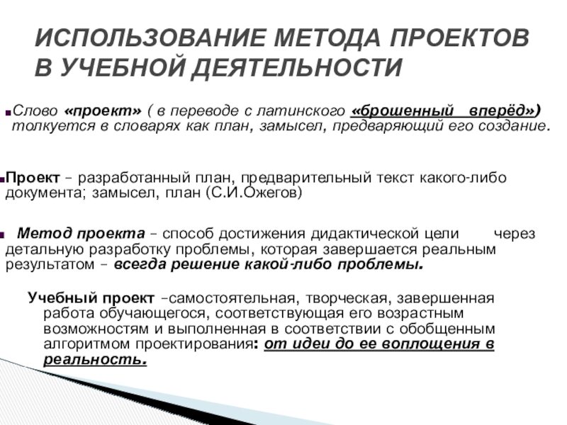 ИСПОЛЬЗОВАНИЕ МЕТОДА ПРОЕКТОВ
