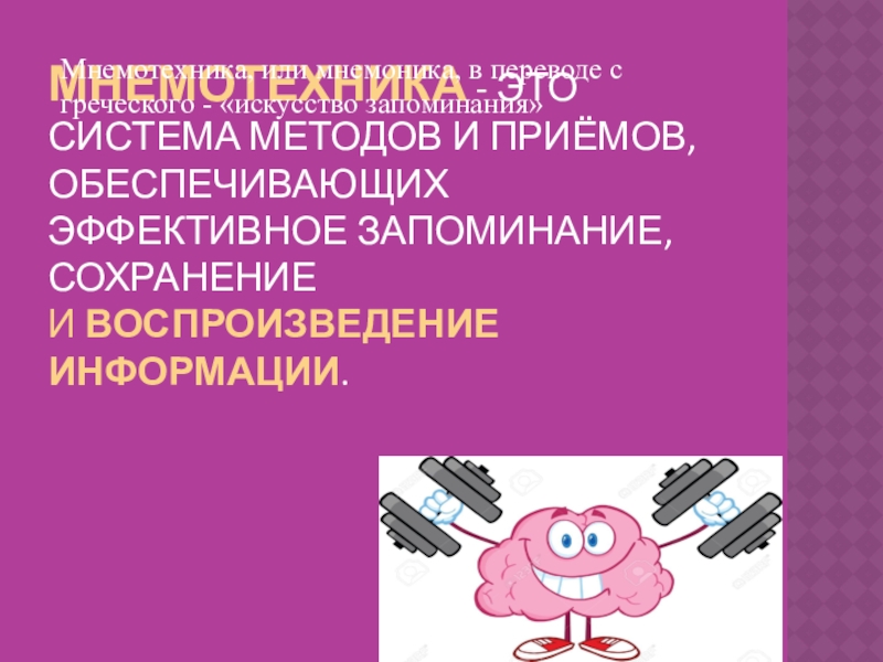 Мнемотехника, или мнемоника, в переводе с греческого - «искусство запоминания»