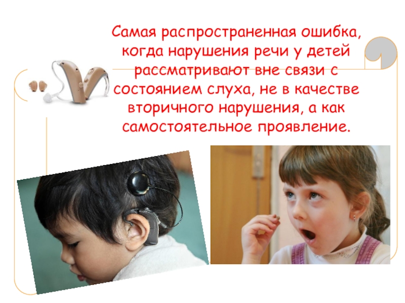 Самая распространенная ошибка, когда нарушения речи у детей рассматривают вне связи с состоянием слуха, не в качестве