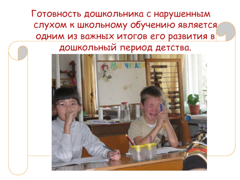 Слайд 5Готовность дошкольника с нарушенным слухом к школьному обучению является одним из